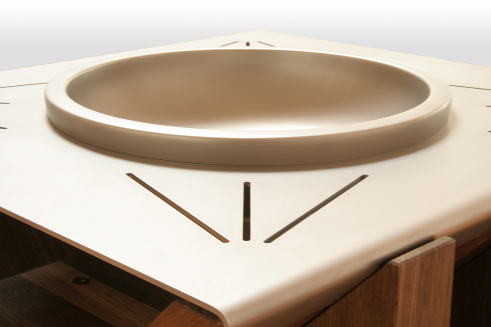 | Maße: | B 50cm, T 48cm, H 97cm, Taufschale ø 26,5cm |